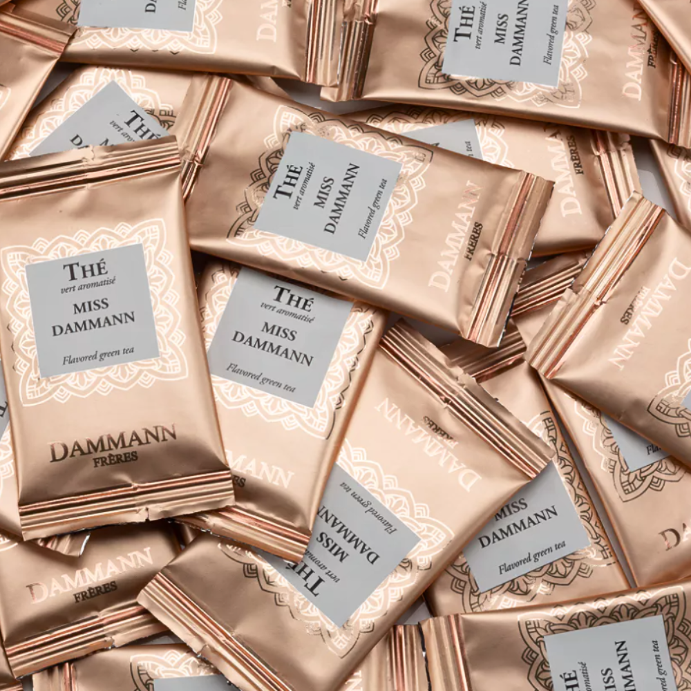 ‘Miss Dammann’ est une création mêlant thé vert et gingembre aux arômes fruités et acidulés du citron et du fruit de la passion.
